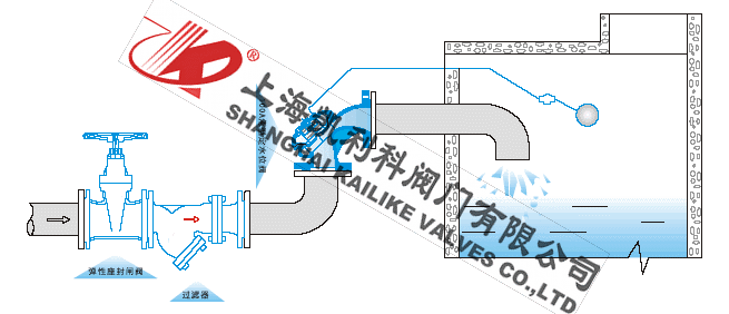 當水池或水箱內(nèi)水位下降,浮球閥開啟排水時,進水管內(nèi)有壓水將閥內(nèi)活塞托起,密封面打開,閥門即開啟供水。當水位上升到控制線時,浮球閥關閉.活塞下移將密封面釣閉,閉門停止供水。
